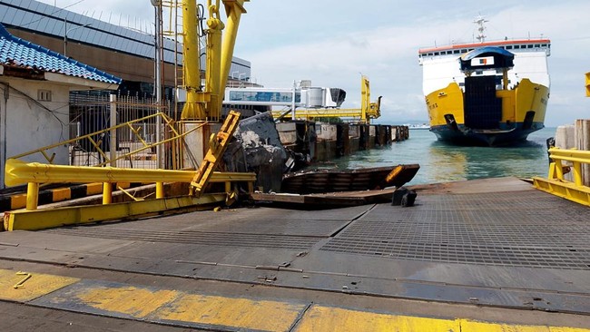 "Saat proses sandar, kapal mengalami kendala olah gerak, kemudian menabrak MB yang mengakibatkan kerusakan pada bagian fender, housing kolom, dan beton protector. Selain itu, KMP Portlink III juga mengalami kerusakan pada bagian ramp door," katanya.