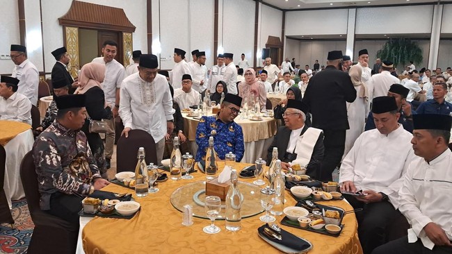 Wakil Presiden ke-13 KH Ma'ruf Amin buka puasa bersama (bukber) dengan Gubernur Banten Andra Soni. Dalam acara itu, Andra diberi pesan terkait membangun daerah.