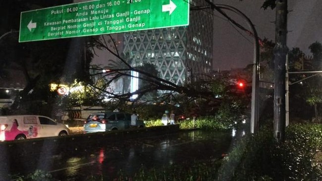 Dihubungi terpisah, Kasudin Gulkarmat Jakarta Pusat Asril Rizal mengatakan peristiwa terjadi pada Senin (17/3), pukul 20.45 WIB. Pohon tumbang menimpa dua kendaraan.