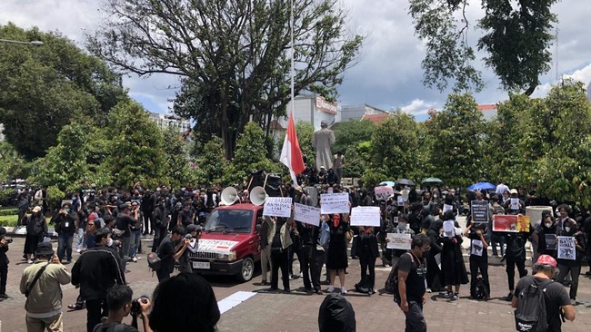 Dilansir detikJogja, Kamis (20/3/2025), pukul 11.10 WIB, massa yang mayoritas berpakaian hitam ini mulai bergerak ke gedung DPRD DIY. Mereka membawa satu unit mobil pikap sebagai mimbar untuk memimpin barisan.