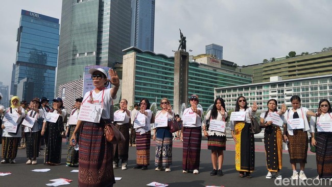 Forum Perempuan Diaspora NTT melakukan aksi menolak kekerasan seksual pada anak dan perempuan di car free day (CFD) Bundaran HI, Jakarta Pusat. Mereka juga menuntut eks Kapolres Ngada AKBP Fajar Widyadharma dihukum berat terkait kasus kekerasan seksual yang menjeratnya.