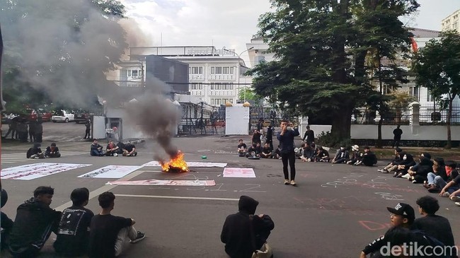 Pantauan detikJabar, Senin (24/3/2025), massa mahasiswa berorasi dengan menyuarakan agar TNI dikembalikan ke barak. Mahasiswa menuntut agar pengesahan Undang-Undang TNI dicabut karena dikhawatirkan dapat mengaktifkan kembali dwifungsi TNI.