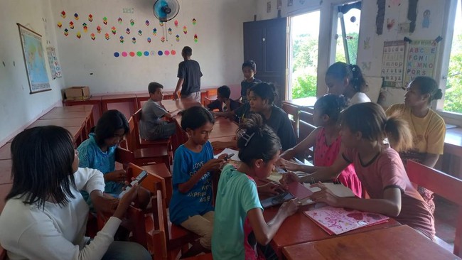Sementara itu, warga setempat, Mama Dince, bersyukur anak-anak bisa mendapatkan les gratis. Sehingga, kata dia, anak-anak bisa mendapatkan pendidikan tambahan.