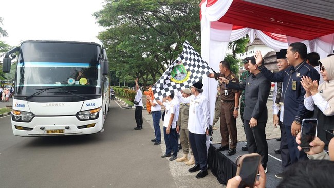 "Hari ini 28 bus kali 45 orang ke lima Provinsi," ujarnya.