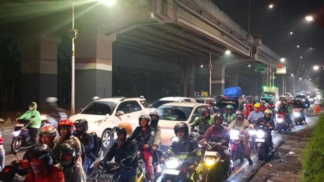 "Dari dua hari yang lalu dilaporkan kenaikan volume kendaraan sekitar 20-30 persen, nah sekarang malam ini cukup meriah 40-50 persen. Untuk arteri seluruhnya hampir roda dua," ujar Teguh.