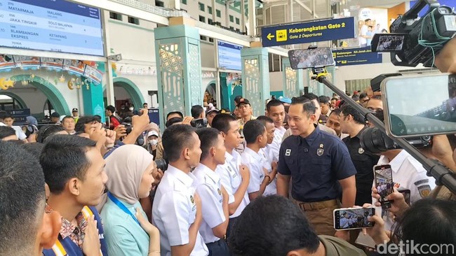 Menko Infrastruktur dan Pembangunan Kewilayahan (Menko IPK) Agus Harimurti Yudhoyono (AHY) meninjau Stasiun Pasar Senen di H-3 Lebaran. AHY memastikan arus mudik di Stasiun Pasar Senen berjalan dengan baik.