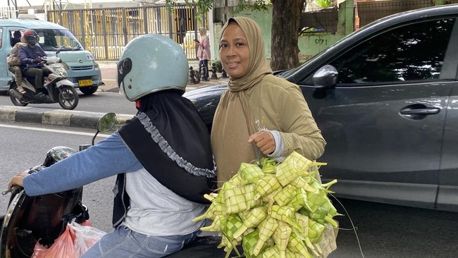 Pantauan detikcom di lokasi, Sabtu (29/3/2025), terlihat pedagang menjajakan ketupat di pinggir jalan atau di atas trotoar. Para pembeli terlihat terus berdatangan.