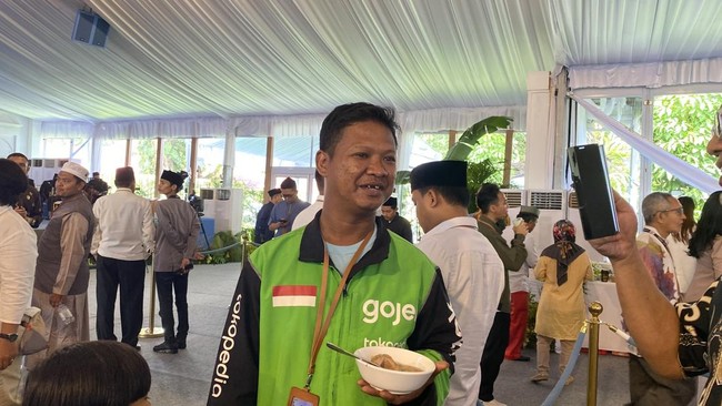 Warga ramai-ramai mengikuti acara gelar griya atau open house bersama Presiden Prabowo Subianto di Istana Kepresidenan Jakarta. Salah satunya Iwan, seorang driver ojek online (ojol), yang ingin bersalaman langsung dengan Prabowo.