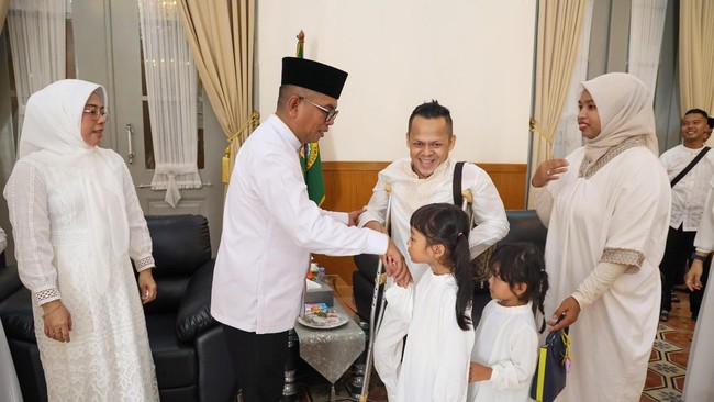 Open house digelar usai Andra dan istrinya, Tinawaty Andra Soni, serta keluarga mengikuti salat id di Alun-alun Kota Serang, Senin (31/3/2025). Open house berlangsung mulai dari pukul 07.30 WIB hingga 10.00 WIB.