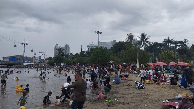 Momen libur Lebaran dimanfaatkan oleh warga untuk berwisata. Salah satu tujuan wisata favorit warga adalah Pantai Ancol, Jakarta Utara.