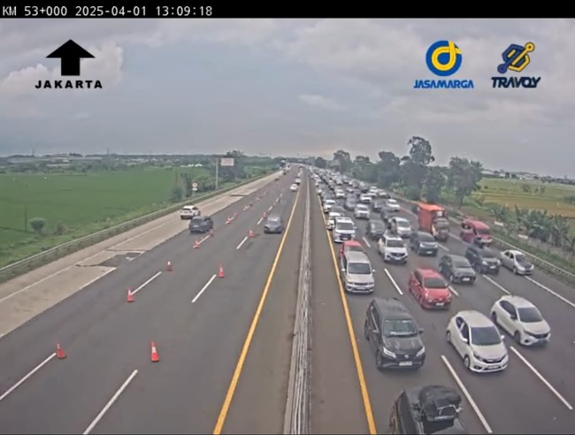 Jasa Marga menginformasikan kepadatan terjadi di Karawang Barat Km 43 hingga Karawang Timur Km 51. Kepadatan lalin juga terjadi di Karawang Timur Km 52 hingga Km 57.