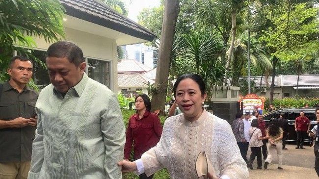 Ketua DPR sekaligus Ketua DPP PDIP Puan Maharani menghadiri open house Lebaran 2025 yang digelar Ketua MPR sekaligus Sekjen Partai Gerindra Ahmad Muzani. Puan datang bersama suaminya, Happy Hapsoro.
