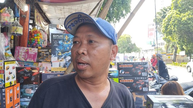 Dia menduga penjualan mainan secara online menyebabkan pembeli tak lagi datang ke Pasar Gembrong. Dia berharap ada aturan mengenai penjualan online sehingga pedagang seperti dirinya dapat terus berjualan.
