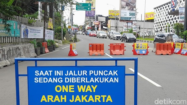 "Untuk prediksi pelaksanaan one way kali ini, mungkin akan berlangsung kurang lebih empat sampai lima jam. Kami akan lihat secara situasional nanti peningkatan bangkitan arus kendaraan yang datang dari arah Cianjur untuk turun atau dari Puncak menuju Jakarta nantinya," pungkasnya.