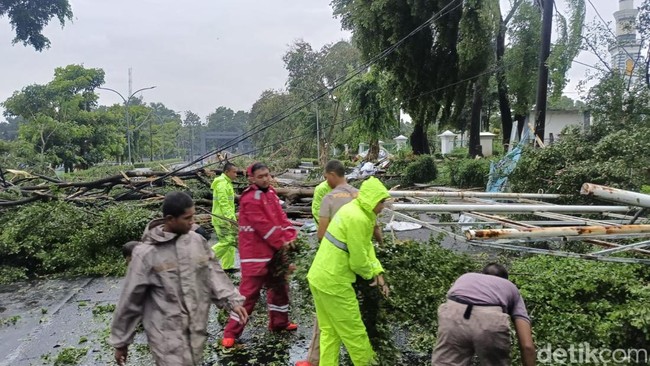 "Nggak lama itu langsung pada datang (petugas). Sekarang lagi pada dibersihin (sisa pohon tumbang)," pungkasnya.