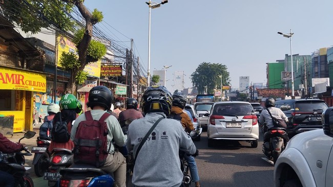 Kendaraan yang berasal dari Kramat Jati mengarah ke Kalibata, Jakarta Selatan tersendat. Kepadatan itu mengular hingga ke simpang PGC dan Jalan Raya Condet.