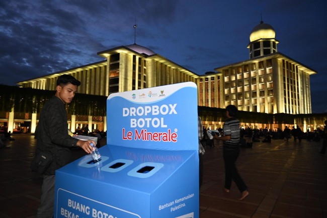 Di sepanjang bulan Ramadan tahun ini, setiap harinya Le Minerale membagikan botol air mineral untuk 3.000 hingga 5.000 jemaah di Masjid Istiqlal. Lewat program ini, Le Minerale mengajak para jemaah Masjid Istiqlal untuk berpartisipasi dalam memberikan bantuan kepada masyarakat Palestina melalui cara yang unik dan sederhana, yaitu dengan menyedekahkan botol plastik bekas Le Minerale. Botol-botol plastik bekas tersebut kemudian dikumpulkan di dropbox botol bekas yang telah disediakan di beberapa titik di area Masjid Istiqlal.