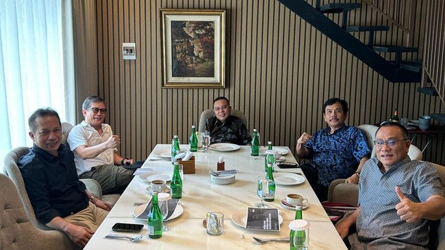 Pertemuan ini digelar di kawasan Senayan, Jakarta Pusat, Senin (7/4/2025). Dasco duduk di tengah meja, sementara Rocky Gerung duduk berseberangan dengan Jumhur dan Syahganda. Ada juga Wamen Koperasi Ferry Juliantono dalam pertemuan itu.