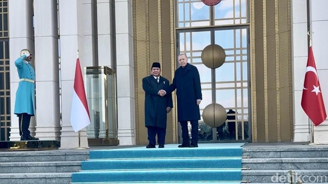Pantauan detikcom, Kamis (10/4/2025), Prabowo tiba di kompleks Istana Kepresidenan di Ankara pukul 16.00 waktu setempat. Prabowo disambut pasukan berkuda dari jalanan utama di depan kompleks Istana.
