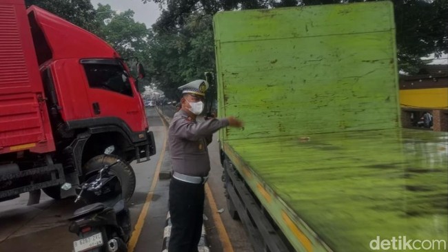 Sebuah truk jeblos ke selokan di Jalan Raya Bogor, Cimanggis, Kota Depok. Lalu lintas (lalin) mengalami kemacetan imbas peristiwa tersebut.