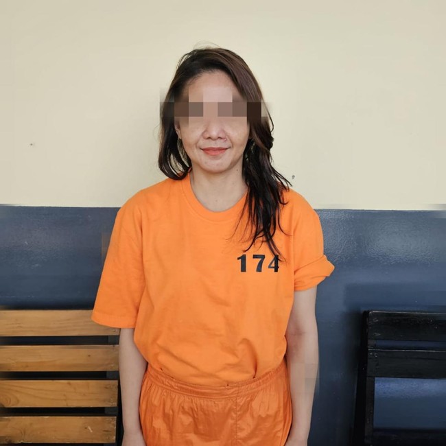 Dari foto yang diterima detikcom, terlihat Sekar Arum Kini mengenakan baju tahanan berwarna oranye. Sekar Arum tersenyum tipis meski sudah diringkus polisi.
