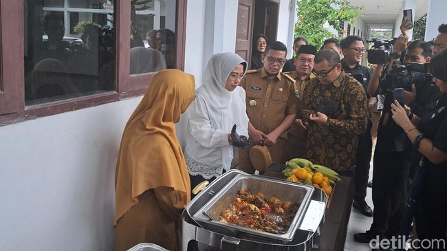 Gubernur Banten Andra Soni mengecek uji coba makan bergizi gratis (MBG) yang digelar Grup Hotel Aston di Anyer, Kabupaten Serang. Andra berharap program Aston ini terus berlanjut.