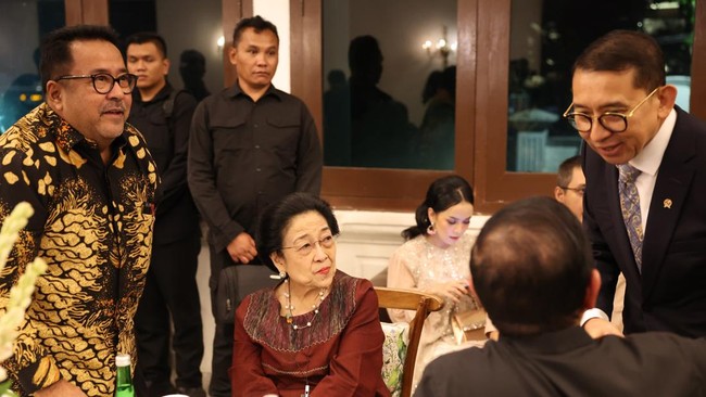 Pantauan detikcom di Gedung Kesenian Jakarta, Pasar Baru, Jakarta Pusat, Selasa (15/4/2025), Megawati sempat berbincang ringan dengan tokoh-tokoh di ruang tunggu. Dalam dokumentasi diterima, terlihat Megawati dan Fadli Zon bertemu dalam kesempatan itu. Tampak Gubernur DKI Jakarta sekaligus politikus PDIP Pramono Anung dan Wagub DKI Jakarta Rano Karno di meja yang sama dengan Megawati.