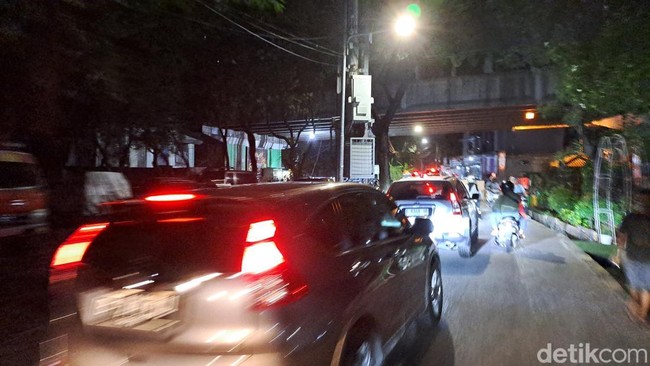 Lalu lintas makin padat ketika memasuki jalanan kampung di Jalan Jati. Sejumlah Pak Ogah terlihat mengatur lalu lintas. Mereka meminta pengendara untuk bersabar agar tidak memperparah kemacetan.