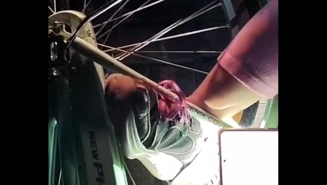 "Kakinya masuk di celah antara penyangga boncengan dan roda, akhirnya kaki masuk ke selipan jari-jari roda sepeda masuk dan terjepit," imbuhnya.