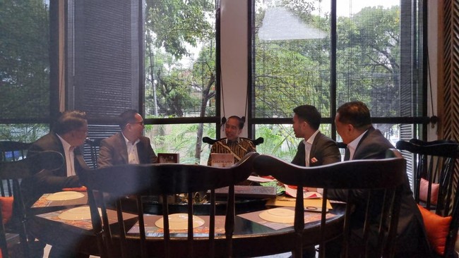 Presiden ke-7 Joko Widodo (Jokowi) bertemu dengan sejumlah mantan menterinya di salah satu restoran di Menteng, Jakarta Pusat. Pertemuan itu berlangsung tertutup.