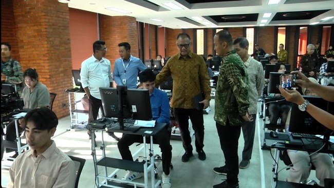 Direktur Jenderal Pendidikan Tinggi Kementerian Pendidikan Tinggi, Sains, dan Teknologi, Khairul Munadi, mengecek pelaksanaan Ujian Tulis Berbasis Komputer Seleksi Nasional Berdasarkan Tes (UTBK-SNBT) di Universitas Indonesia. Khairul mengingatkan pentingnya kejujuran.