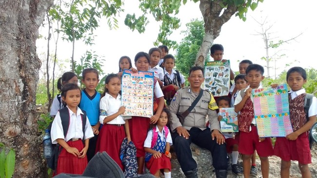 Bhabinkamtibmas Bripka Sumantri berupaya meningkatkan minat baca anak-anak di Desa Lekunik, Kabupaten Rote Ndao, Nusa Tenggara Timur (NTT), melalui program perpustakaan keliling. Dia berharap anak-anak di wilayah binaannya semakin giat belajar dan mengembangkan diri ke arah lebih baik.