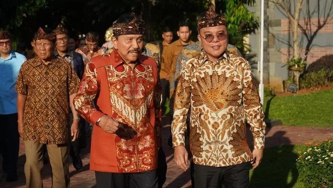 Wakil Ketua DPR Sufmi Disco Ahmad mengunjungi Kraton Majapahit Jakarta. Dasco disambut langsung oleh AM Hendropriyono selaku tuan rumah.