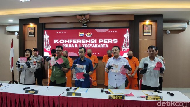 Para tersangka yang ditangkap adalah pria inisial DA (46) dan RI (40), warga Kasihan, Bantul, serta pria inisial DP (43), warga Kota Jogja. Para pelaku ditangkap oleh jajaran Polresta Kota Jogja.