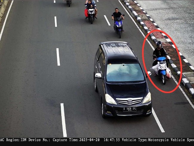 Aksi tersangka tersebut terekam CCTV milik Polda Metro Jaya. Dalam foto yang dibagikan, tersangka menggunakan sepeda motor matik berwarna biru-putih.