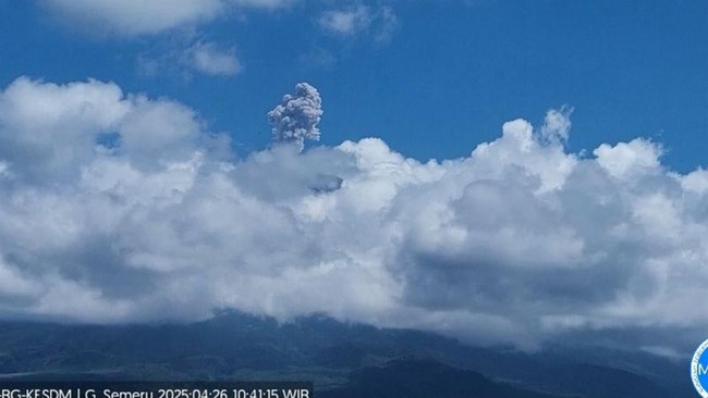 "Terjadi erupsi Gunung Semeru pada pukul 12.39 WIB. Visual letusan tidak teramati. Erupsi terekam di seismograf dengan amplitudo maksimum 22 mm dan durasi 143 detik," kata petugas Pos Pengamatan Gunung Semeru, Sigit Rian Alfian, dilansir Antara, Sabtu (26/4/2025).