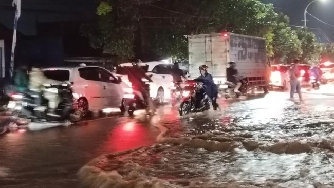"Karena hujan deras dari siang, jadi air drainase dan sungai meluap. Sehingga merendam pemukiman dan jalan utama. Sudah diingatkan untuk menunggu banjir reda, tapi banyak yang memaksakan diri menembus banjir sehingga kendaraannya mogok," kata Asep.