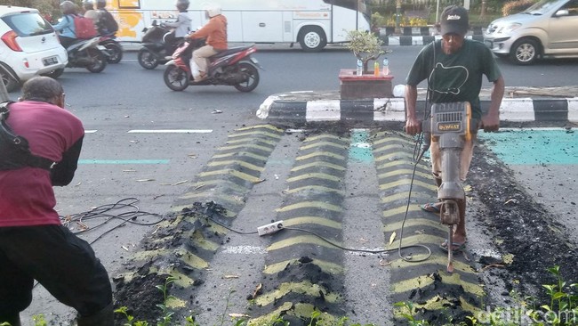 Dilansir detikJateng, Senin (28/4/2025), pembongkaran polisi tidur itu dilakukan sejak Minggu (27/4) pagi hinga sore. Tampak delapan polisi tidur di barat dan timur simpang jalan depan pertokoan sudah rata.