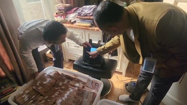 Masih pada ruangan yang sama, tim juga mendapati boks yang berisi uang hingga emas batangan. Dengan teliti penyidik langsung menghitung kepingan emas yang tersimpan dalam tiap-tiap tempat penyimpanan.