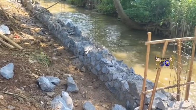 Dari video yang dilihat detikcom Rabu (30/4/2025), tampak seorang warga merekam proyek tersebut. Tampak ada warga tengah mengerjakan proyek tersebut. Kemudian bebatuan yang tertumpuk di pinggir sungai.