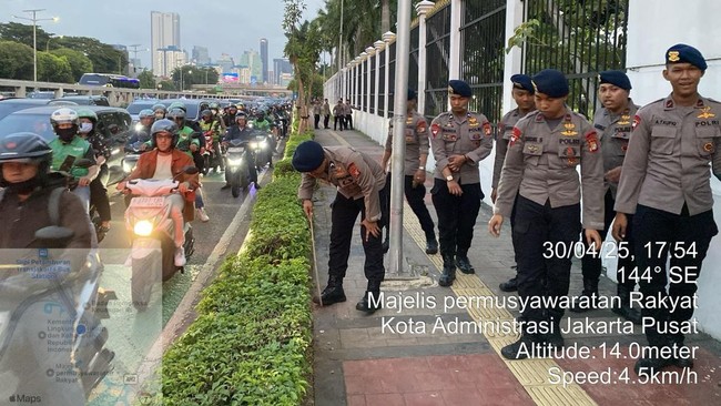 Brimob Polda Metro Jaya melakukan penyisiran di sejumlah titik sekitar Kompleks Gedung DPR/MPR RI. Hal itu dilakukan untuk memastikan situasi aman menjelang peringatan Hari Buruh Internasional atau May Day, yang jatuh pada 1 Mei 2025 hari ini.