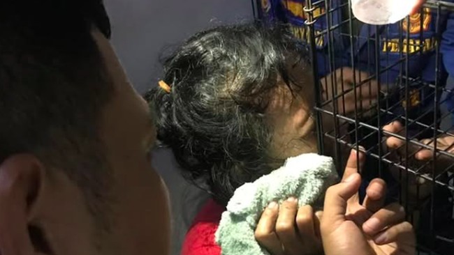 Petugas harus memotong besi kandang kucing saat melakukan evakuasi. Korban pun segera diberikan pengobatan di bagian matanya.