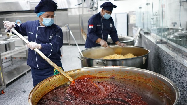 "Tiap Jumat kita siapkan nasi Arab dengan ayam panggang dan kurma. Tapi tetap dominan menu Nusantara, seperti nasi uduk, orek tempe, dan sambal-sambalan. Jauh dari rumah tapi tetap makan rasa Indonesia. Itu yang kami usahakan setiap hari," sambung Suhendi.