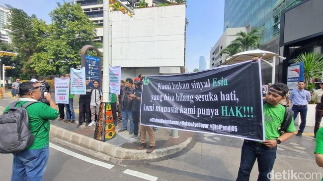 Pantauan di lokasi, Rabu (7/5/2025), massa yang tergabung dalam Solidaritas Eks Karyawan Bakrie Telecom 2018-2019 itu memulai demo sekitar pukul 09.30 WIB. Mereka membawa poster dan spanduk berisi tuntutan, disambung dengan orasi.