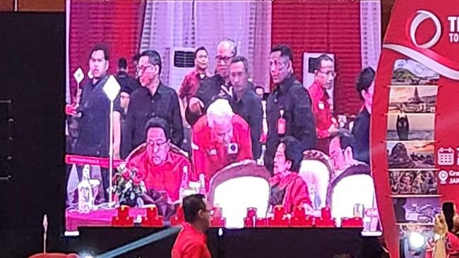 Pantauan detikcom di Grand Sahid Jaya Hote, Kamis (8/5/2025), Megawati hadir didampingi puteranya sekaligus Ketua DPP PDIP Prananda Prabowo.