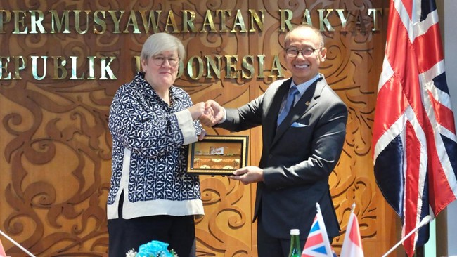 Wakil Ketua MPR RI Eddy Soeparno menerima kedatangan Utusan Khusus Pemerintah Inggris untuk Iklim Prof Rachel Kyte di MPR RI. Kedatangan Prof Rachel menemui Eddy adalah untuk membahas isu terkini mengenai perubahan iklim dan upaya Indonesia mencapai Net Zero Emission (NZE) di Tahun 2060 mendatang. Salah satu isu krusial yang dibahas Prof Rachel bersama Eddy adalah mengenai transisi energi dan percepatan pengembangan energi terbarukan.