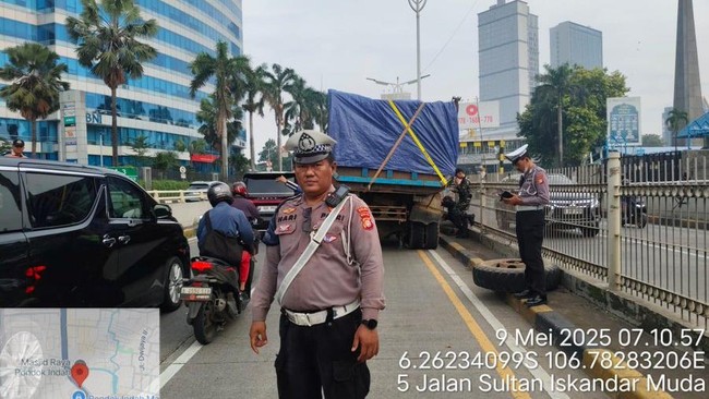 "Anggota Unit Satlantas Jakarta Selatan membantu pengamanan kendaraan truk yang mengalami gangguan di Jl underpass Pondok Indah arah Gandaria City," demikian dikutip dari X TMC Polda Metro Jaya, @TMCPoldaMetro, Jumat (9/5/2025).