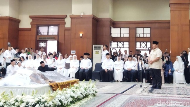 "Saya ingin menyampaikan rasa belasungkawa atas meninggalnya Mayor Jenderal TNI (purn) Eddie Mardjoeki Nalapraya. Kita mengenal beliau sebagai yang pertama adalah seorang pejuang bangsa yang ikut dalam perang kemerdekaan RI," kata Prabowo saat melayat almarhum Eddie Mardjoeki Nalapraya di Padepokan TMII, Jakarta Timur, Selasa (13/5/2025).