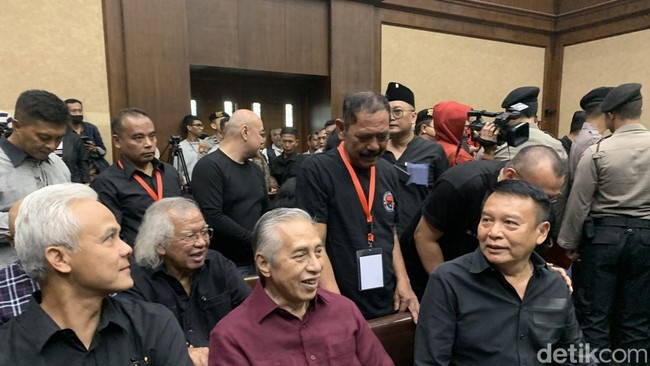 Anggota DPP PDIP yang juga mantan Gubernur Jawa Tengah, Ganjar Pranowo, menghadiri sidang lanjutan kasus dugaan suap pergantian antarwaktu (PAW) anggota DPR untuk Harun Masiku dan perintangan penyidikan, terdakwa Sekjen PDIP, Hasto Kristiyanto. Sejumlah anggota DPR dari fraksi PDIP juga hadir langsung dalam sidang tersebut.
