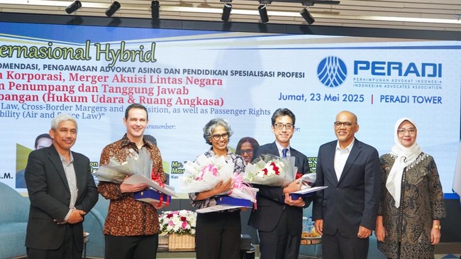 Dewan Pimpinan Nasional Perhimpunan Advokat Indonesia (DPN Peradi) mengadakan seminar internasional secara hybrid dengan tema 'Memahami Hukum Korporasi, Merger, Akuisisi Lintas Negara dan juga Hak Klaim Penumpang dan Tanggung Jawab Perusahaan Penerbangan (Hukum Udara dan Ruang Angkasa)', di Peradi Tower.